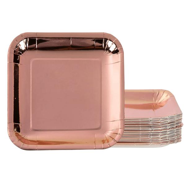 Square rose gold foil paper plates in a pack, adequate quantity and appropriate size can meet your daily needs.